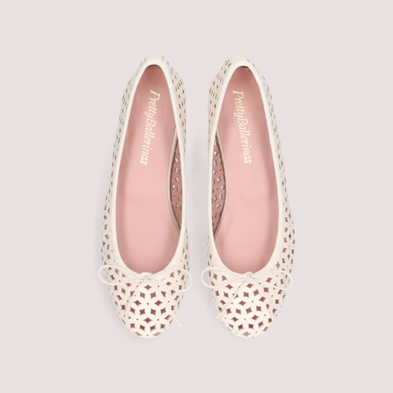 ラウンドトゥのエレガントなフォルムと繊細な細コードのリボンが印象的なプリティ・バレリーナの人気定番モデル【MARILYN/マリリン】。そのマリリンのアッパーに花柄のカットワークが施された牛革パテントを採用。抜け感のあるデザインが軽やかさを演出し、見た目にも優しげな印象に仕上がっています。シンプルながらもディテールにこだわった一足は、きれいめカジュアルから上品なオフィススタイルまで幅広く活躍します。